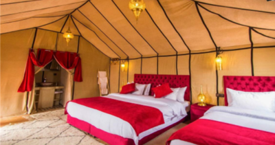 26 Fev. 2025Pequeno-almoço no hotel. Saída em direção ao deserto de Merzouga com paragem para visita as famosas Gargantas de Todra, uma das paisagens mais famosas de Marrocos . Almoço em restaurante. Prosseguimos viagem para o Deserto de Merzouga. Ao pôr-do-sol, damos um passeio de camelo pelas dunas de Erg chebbi. Realizaremos uma viagem em 4×4 (jipes todo terreno) que nos levará até ao acampamento. Jantar e alojamento em “Jaimas” (tendas ). Onde poderemos apreciar as músicas e danças tradicionais do povo Berbere.